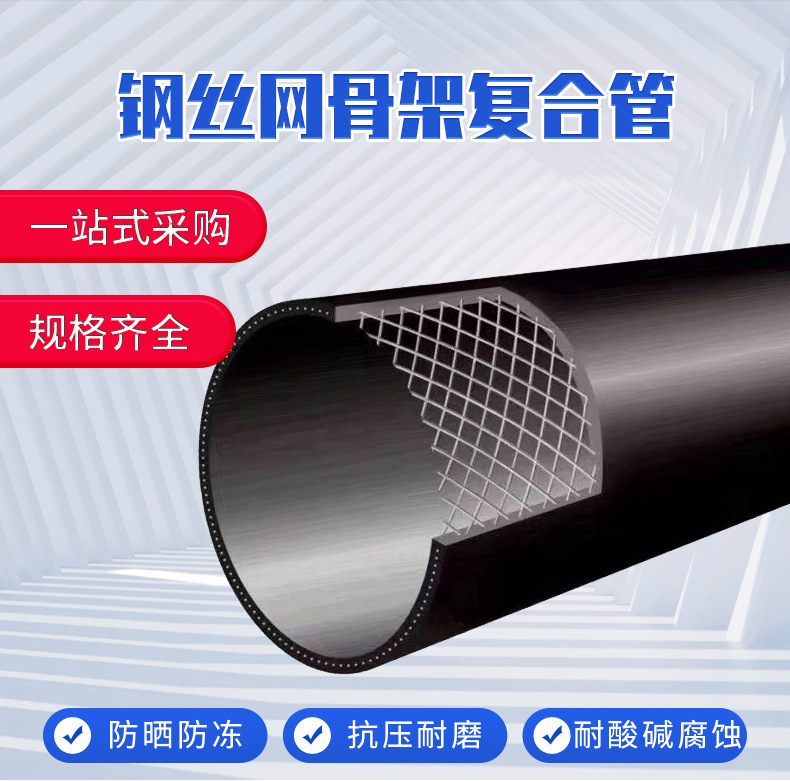 鋼絲網(wǎng)骨架通過專用熱熔膠層復(fù)合在塑料之中,管材內(nèi)外表面具有相同防腐性能,耐磨,內(nèi)壁光滑輸送阻力小,不結(jié)垢,不結(jié)蠟,節(jié)能效果明顯,用于埋地輸送及有腐蝕性環(huán)境條件下更加經(jīng)濟方便。