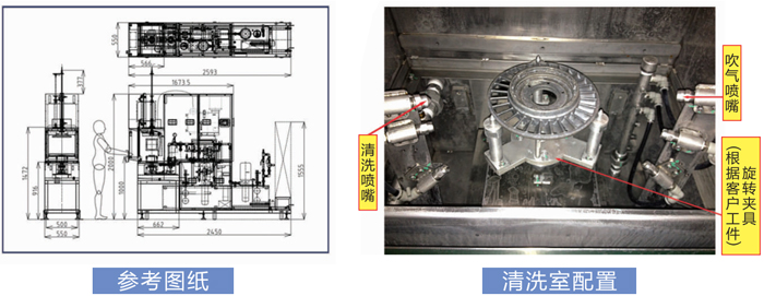 ◇通過高壓定位和噴射清洗去除上述工件孔內(nèi)殘留的加工屑以及整體表面的異物。